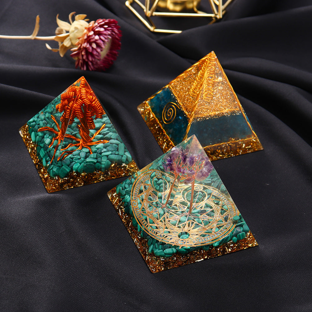 Color: Malachite Purple Tree 7-8cm, Malachite Copper Tree 6.5cm, Blue Apatite Gold Wire 7cm
